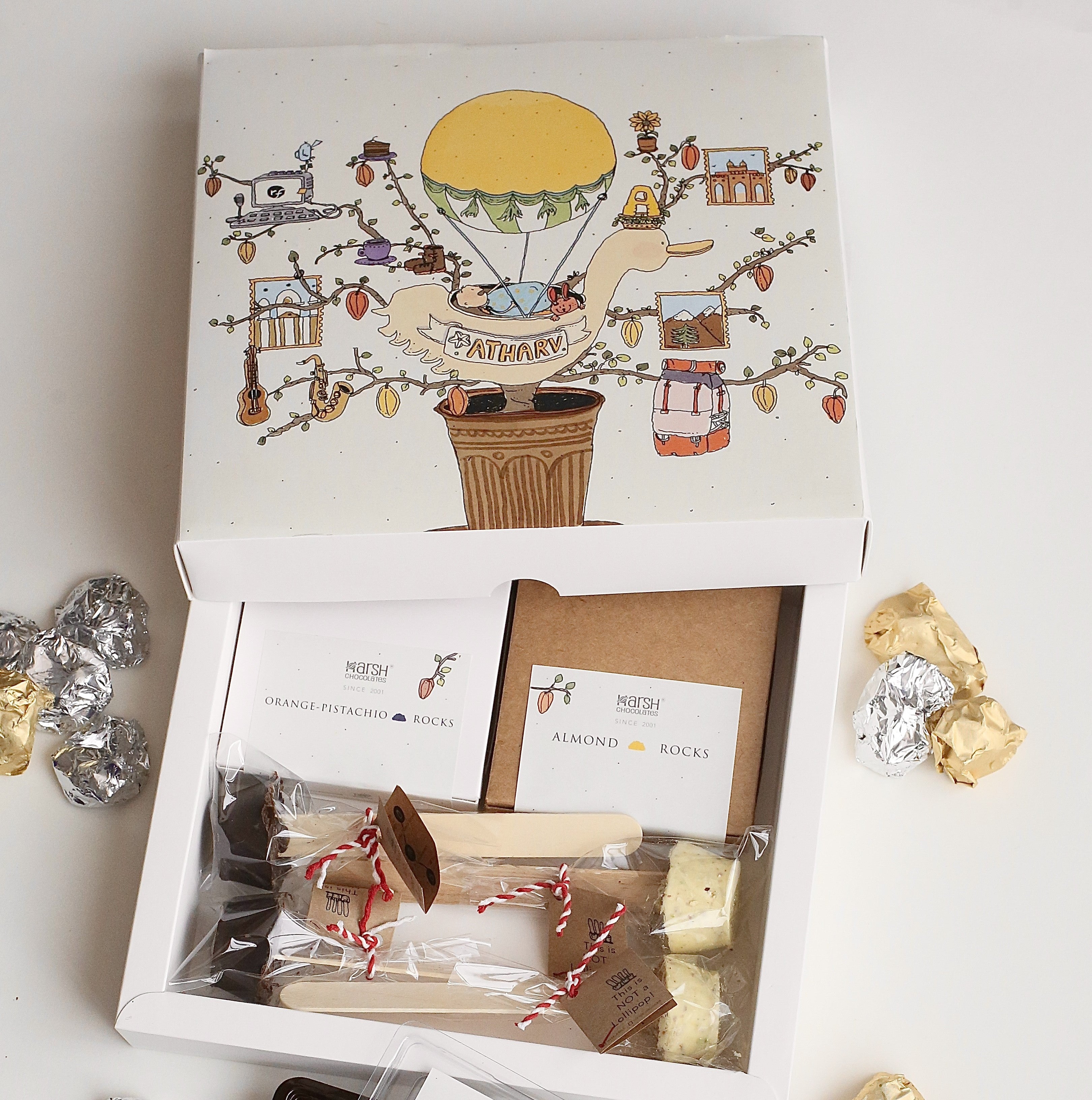 With your story and our expertise in design, drawing, craft, taste and packaging, we create gifts that leave a lasting impression!